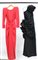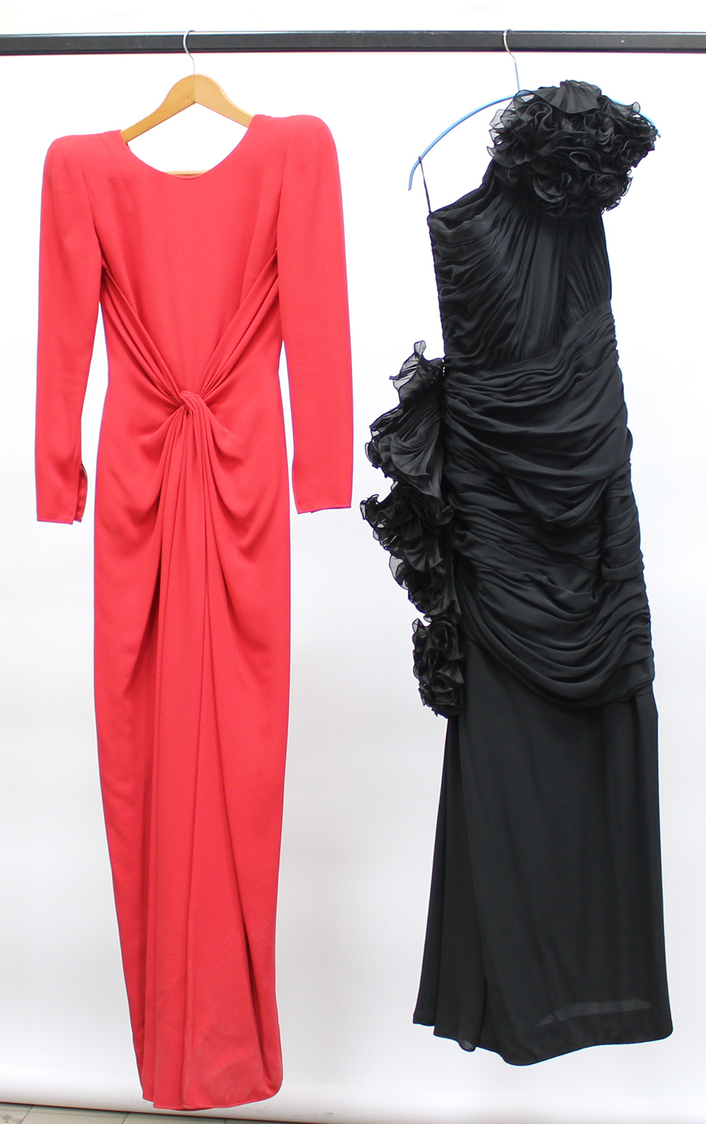 Lotto composto da due vestiti lunghi uno rosso a maniche lunghe e uno nero monospalla (tg. Differenti) (difetti)