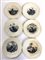 Interessante serie di sei piatti in ceramica smaltata bianca con all'interno...