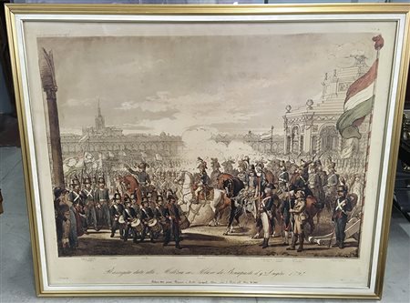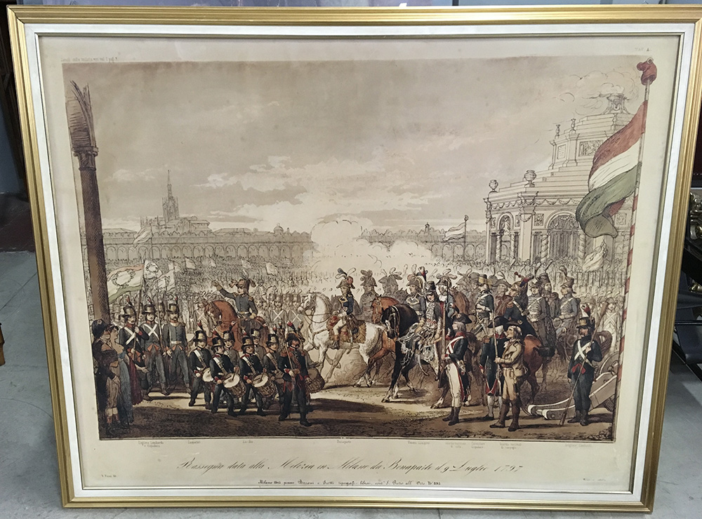 Grande pannello con riproduzione di incisione inerente l'esercito del Regno...