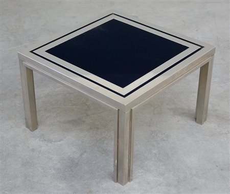 Tavolino da salotto quadrato in acciaio e vetro (cm 55x37x55) (difetti)