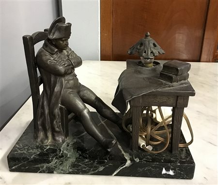 Curioso gruppo di Antimonio su base di marmo.Napoleone alla scrivania con...