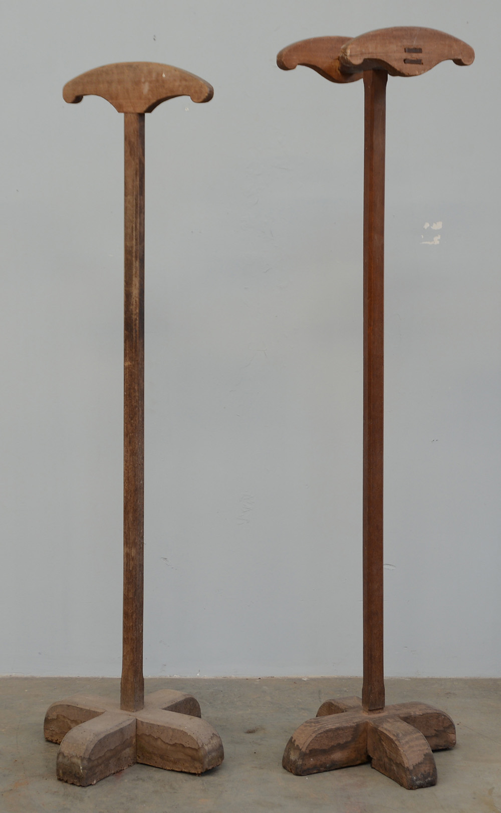 Lotto composto da due appendiabiti in legno (misure diverse, difetti)