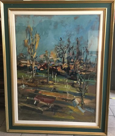 Ignoto "Paesaggio con alberi" olio su tela (cm 80x60) in cornice