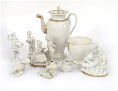 Lotto composto da dieci oggetti in porcellana e ceramica di diverso uso e...