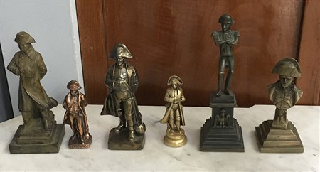 Lotto di sei statuette in bronzo che raffigurano l'Imperatore. Varie dimensioni ed effigi.