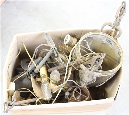 Cartone contenente un lampadario e alcune lampade da tavolo (difetti)