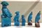 Lotto composto da tre cani di Pho in ceramica blu e una coppia di uccelli a...