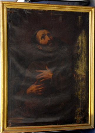 Scuola del secolo XVIII "San Francesco" olio su tela (cm 115x85) In cornice dorata (gravi difetti e mancanze)
