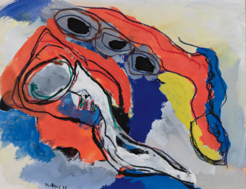 KAREL APPEL 1921 - 2006 SENZA TITOLO signed and dated 58, watercolour and crayon on paper firmato e datato 58 acquerello e pastelli su carta cm 50x64 check Appel Foundation PROVENANCE Chase Gallery, New York Acquistato dall'attuale proprietario nel 1999