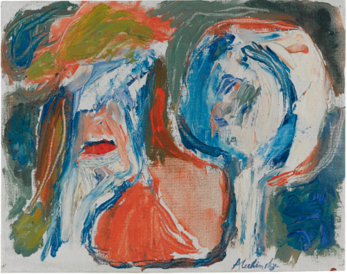 PIERRE ALECHINSKY N. 1927 DEVANT L'UNE, L'AUTRE signed, titled on the stretcher, oil on canvas. Executed in 1960 firmato; intitolato sul telaio olio su tela cm 34x43 Eseguito nel 1960 L'opera è accompagnata da certificato su fotografia rilasciato dall'artista PROVENANCE Collezione Comunello Cacrano, Treviso Raccolta Aldo, Venezia Galleria Arte Centro, Milano
