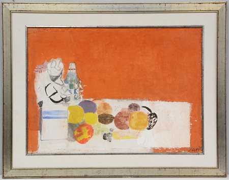 Bruno Saetti (Bologna 1902 - 1984)"Natura morta"fresco su tela, cm 63x87...