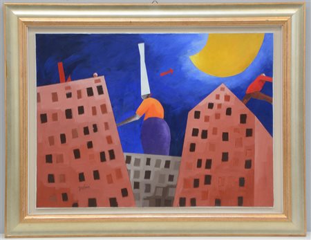 Emilio Tadini (Milano 1927 - 2002)"Fiaba" acrilico su carta intelata, cm...
