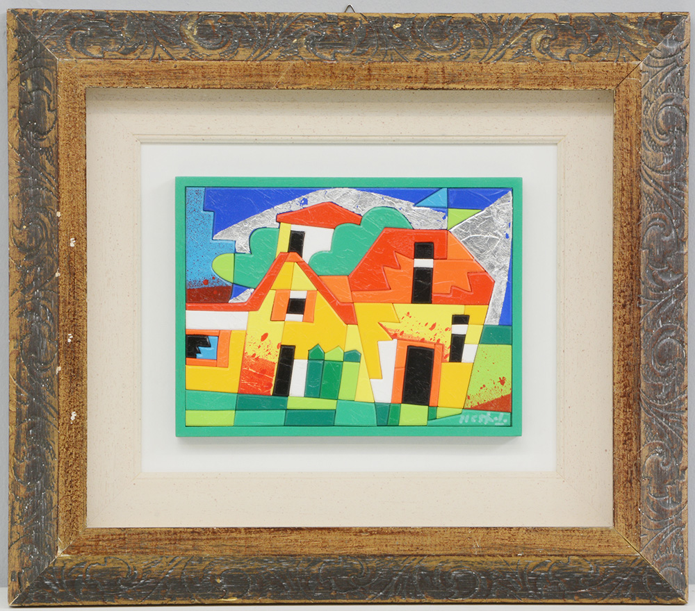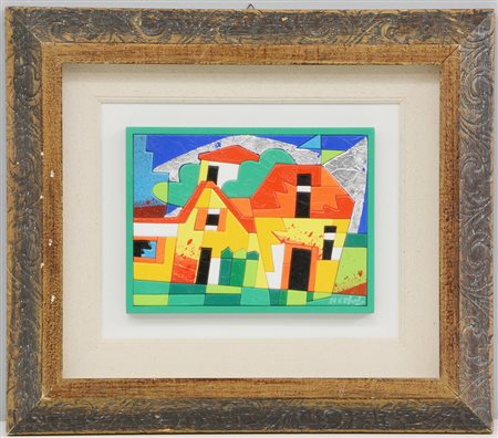 Ugo Nespolo (Mosso Santa Maria 1941)Vilage - Perchè" acrilico su legno, cm...