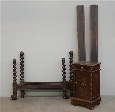 Lotto composto da letto ad una piazza in legno scolpito ed un comodino ad...