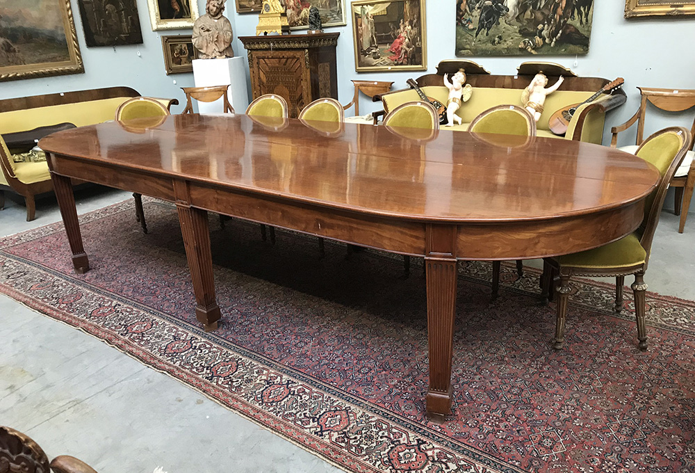 Grande tavolo da pranzo lastronato in noce. Seconda metà decolo XIX (cm 356x145x81)(lievi difetti)