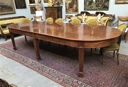 Grande tavolo da pranzo lastronato in noce. Seconda metà decolo XIX (cm...