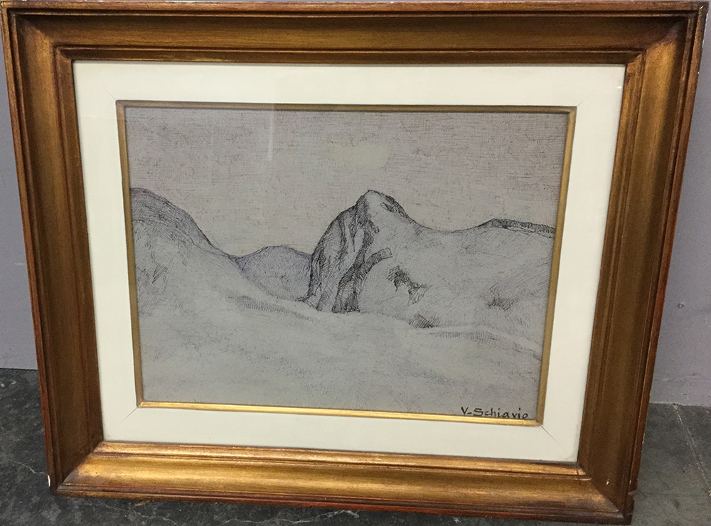 Vincenzo Schiavio (Gorla di Veleso 1888 - 1954)"A sera" china su cartoncino...