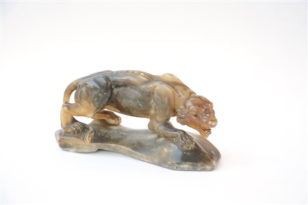 Scultura in alabastro raffigurante una tigre (h cm 22, l cm 43) (difetti)