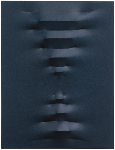 AGOSTINO BONALUMI N. 1935 BLU signed and dated 73 on the reverse, shaped canvas and acrylic firmato e datato 73 sul retro tela estroflessa e acrilico cm 65x50 Opera registrata presso l'Archivio Agostino Bonalumi, Milano, con il n. 73-019 L'opera è accompagnata da certificato su fotografia rilasciato dall'Archivio Agostino Bonalumi, Milano PROVENANCE Acquistato dall'attuale proprietario direttamente dall'artista nel 1973 circa