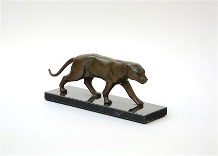 Scultura in bronzo raffigurante una pantera su base in marmo nero (h cm 13) (lievi difetti)