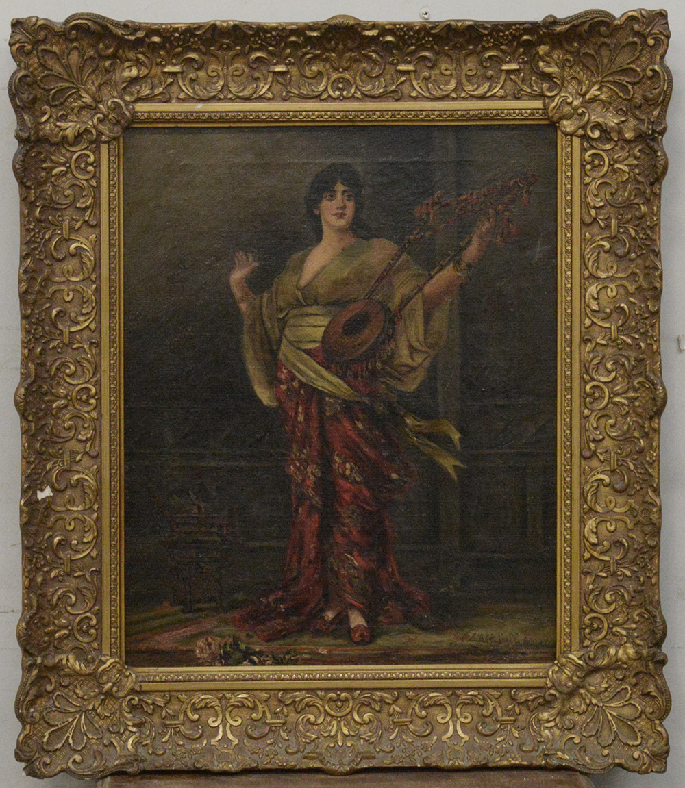 Ignoto del XIX Secolo "Suonatrice" olio su tela (cm 51x41) Iscritto Cesare...
