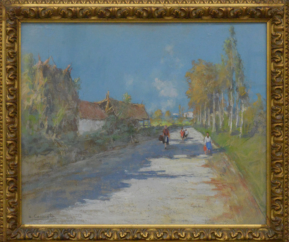 Antonio Cannata (1895 - 1960)"Strada di campagna" tecnica mista su compensato...