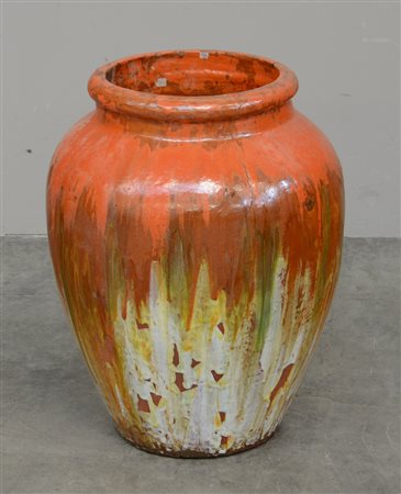 Grande vaso in terracotta smaltata rossa e bianca (h cm 58) (lievi difetti)