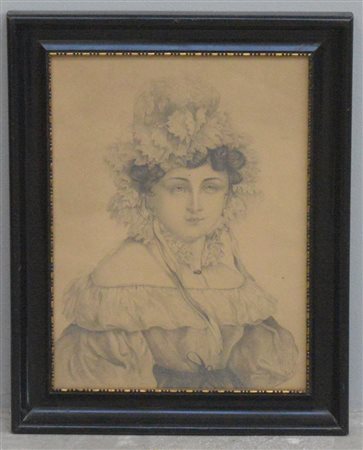Firma indecifrata, secolo XIX "Ritratto di donna con cuffia" matita su carta...