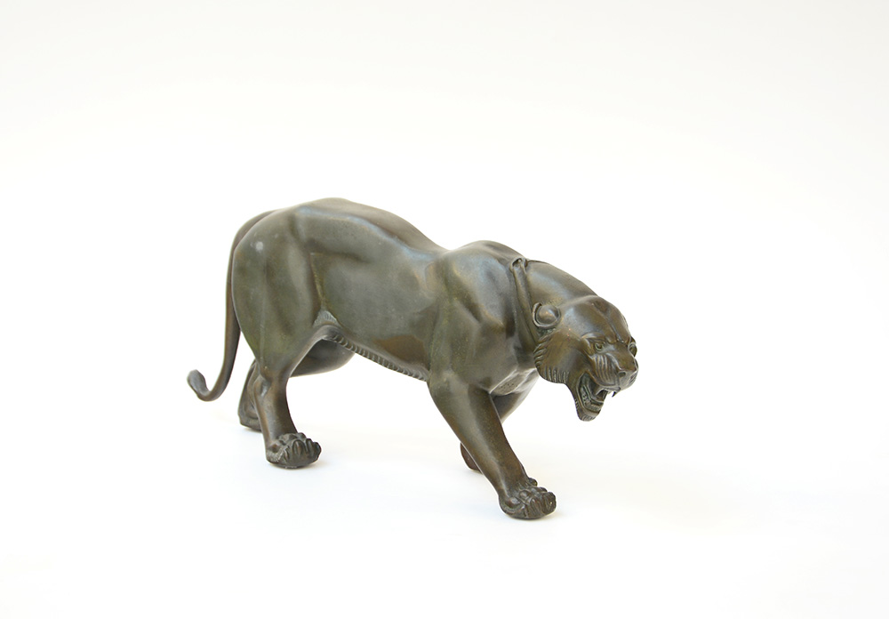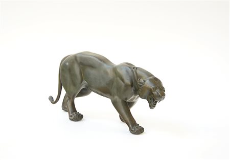 Scultura in bronzo raffigurante una pantera (h cm 17, l cm 42) (lievi difetti)