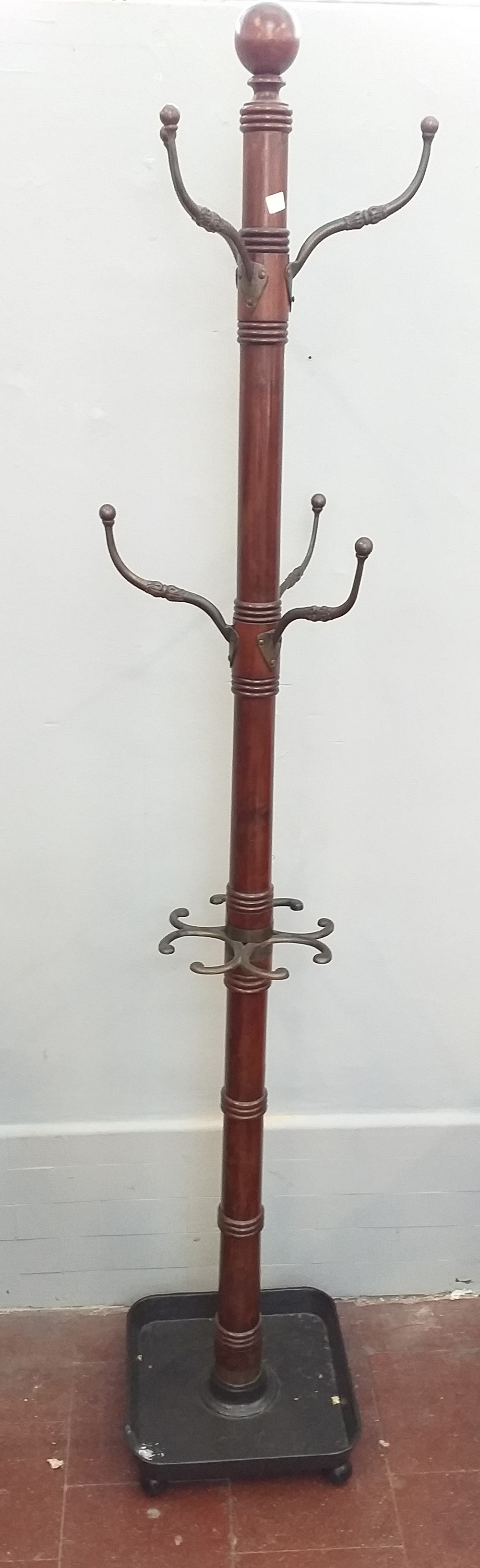 Appendiabiti con portaombrelli in legno tornito con braccia in metallo (h cm 200)(lievi difetti)