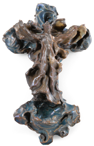 LUCIO FONTANA 1899 - 1968 CROCIFISSO signed with monogram and dated 47 on the reverse, glazed ceramic siglato L.F. e datato 47 sotto la base ceramica colorata e riflessata cm 26x15x7 Opera registrata presso la Fondazione Lucio Fontana, Milano, con il n. 1900/228 L'opera è accompagnata da certificato su fotografia rilasciato dalla Fondazione Lucio Fontana, Milano
