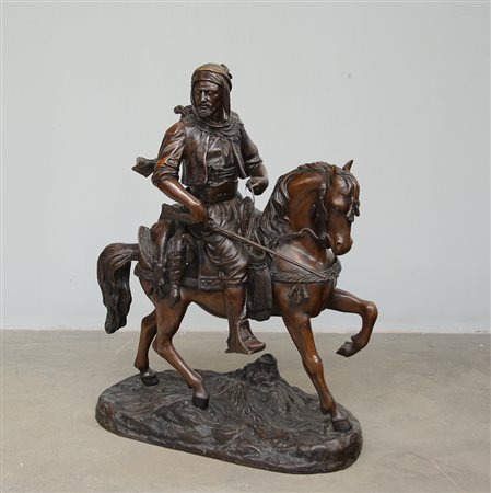 Barge "Cacciatore arabo" scultura in bronzo patinato (h cm 107, lunghezza cm...