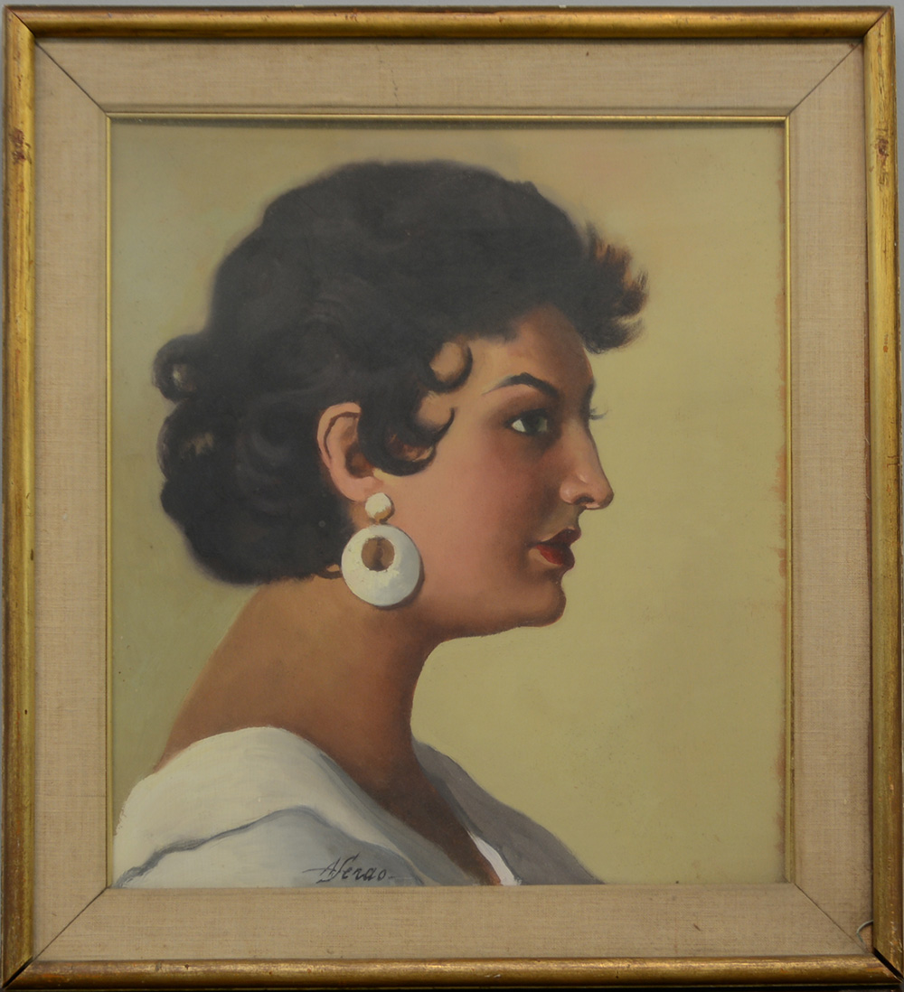 Alberto Serao (1912)"Profilo di Maria Pia Schiaffino", olio su compensato,...