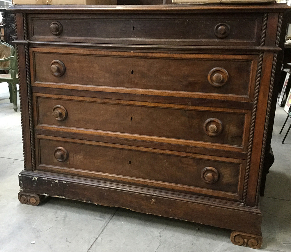 Comò in legno con fronte a quattro cassetti (cm 118x98x55,5 circa)