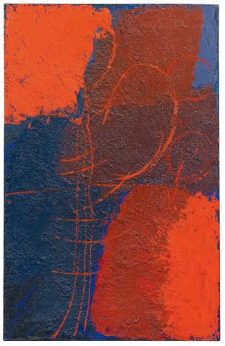 ALFREDO CHIGHINE 1914 - 1974 ROSSO BLU CON IMMAGINE signed, titled and dated 1972-1973 on the reverse, oil on canvas firmato, intitolato e datato 1971-1973 sul retro olio su tela cm 97,5x62