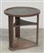 Tavolino tondo da salotto con montanti raccordati e piano a fascia scanalata...
