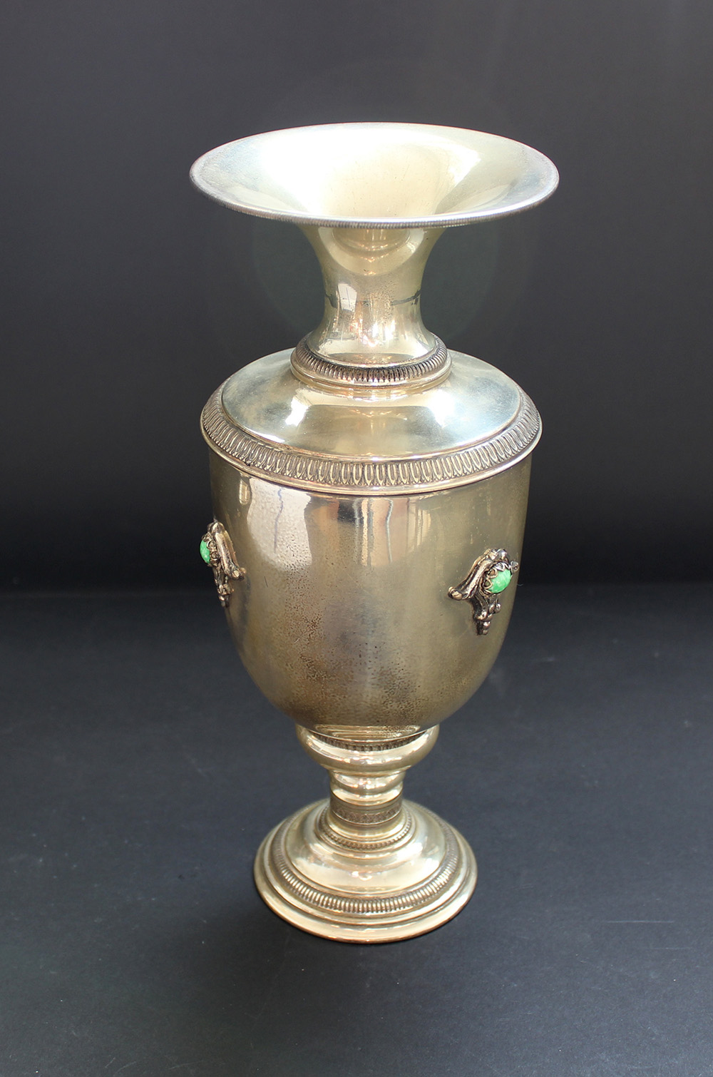 Vaso in argento decorato a cabochon in pietra dura (g 520 ca.) (difetti)