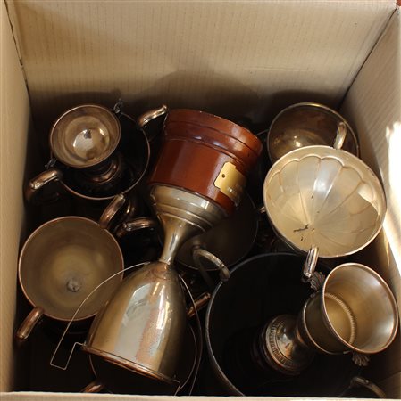 Cartone contenente undici coppe da regata in argento (difetti)
