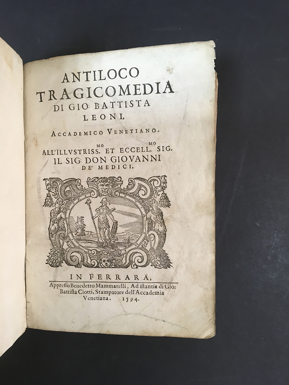 Leoni (Giovanni Battista) Antiloco, Tragicomedia, 1594
