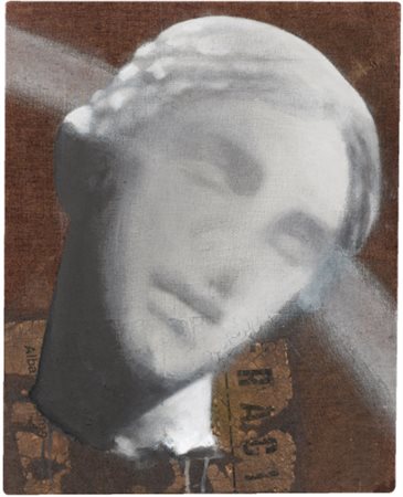 LUCA PIGNATELLI N. 1962 AFRODITE signed, titled, dedicated and dated 2001 on the reverse, oil on canvas firmato, intitolato, dedicato e datato 2001 sul retro olio su telone ferroviario cm 50x40