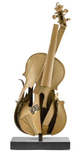 ARMAN 1928 - 2005 LE TOMBEAU DE PAGANINI signed and numbered 82/150, broken polished bronze violin incorporated onto marble base. Executed in 1979 firmato e numerato 82/150 violino di bronzo lucidato e spaccato su base di marmo cm 58x24x15 Eseguito nel 1979 Opera registrata presso l'Arman Studio New York Archives, a cura di Corice Canton Arman, con il n. APA#8401.79.032 PROVENANCE Galleria Salvatore Ala, Milano Ivi acquistato dall'attuale proprietario EXHIBITED Roma, Le Point Gallery, Arman. Opere del 1979, 1981, n. 13