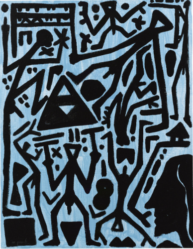 A. R. PENCK B.1939 K IM BLICKFELD signed, titled and dated 2001 on the reverse, acrylic on canvas firmato; intitolato e datato 2001 sul retro acrilico su tela cm 90x70 Eseguito nel 2001 PROVENANCE Galleria San Carlo, Milano Ivi acquistato dall'attuale proprietario nel 2006