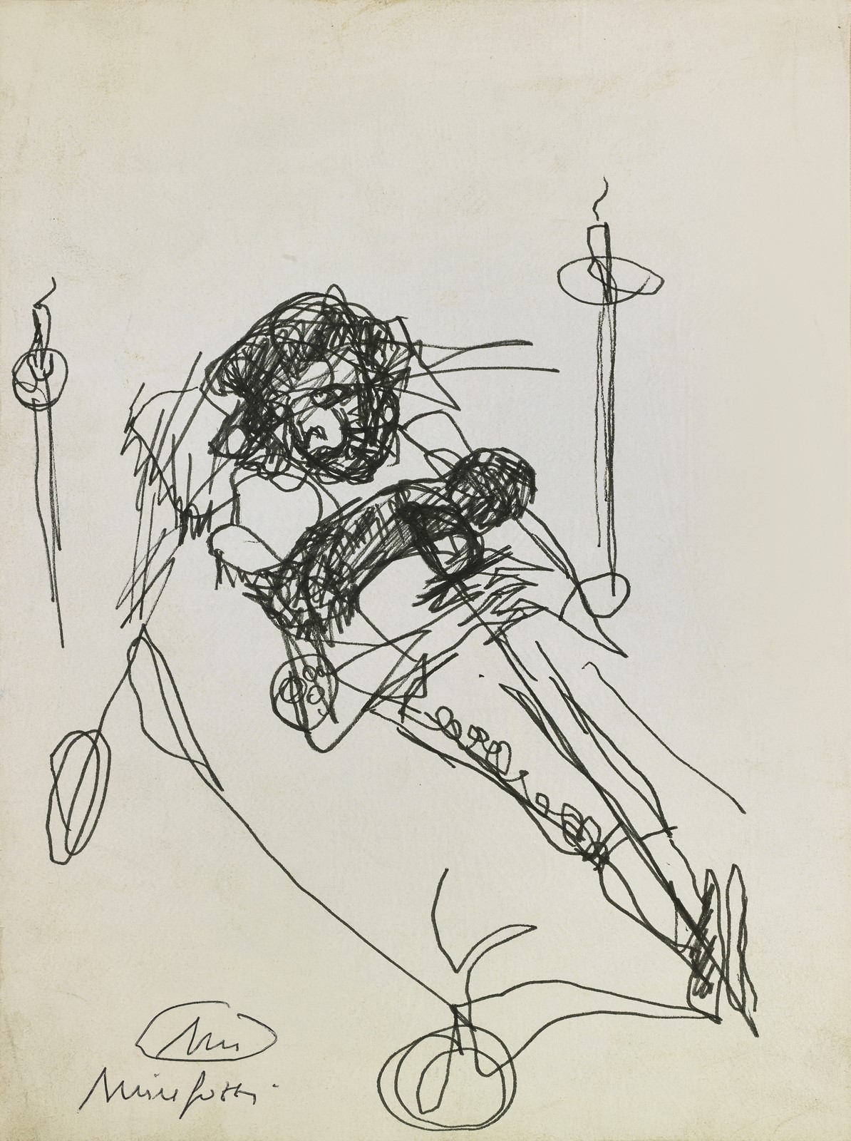 MINGUZZI LUCIANO (1911 - 2004) Untitled. Marker on paper. Cm 24,00 x 32,00. Signature lower left. Luciano Minguzzi Foundation, Milan authenticity certificate on photo. Cornice presente