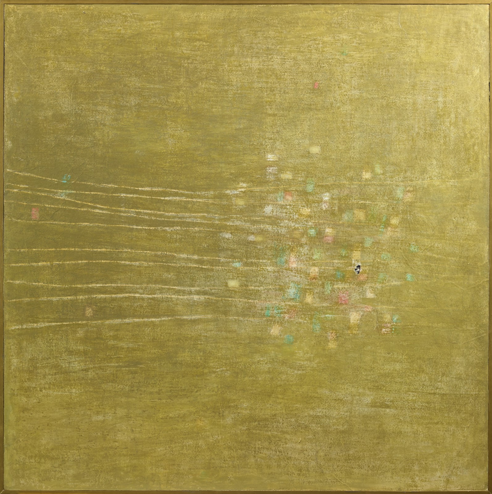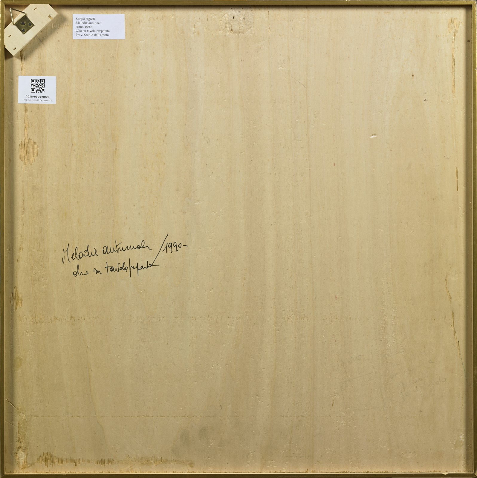 AGOSTI SERGIO (n. 1933) Melodie autunnali. 1990. Tecnica mista su carta incollata su tavola. Cm 60,00 x 66,00. Al retro titolo e anno. Presenti lievi difetti.