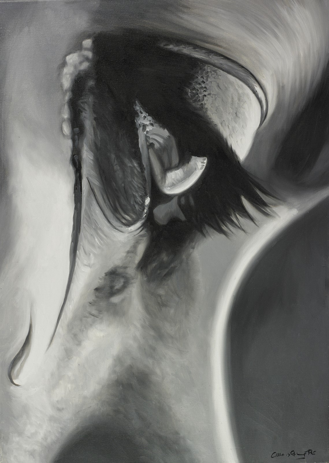 PERI MARIA GIOVANNA (n. 1978) Tears. 2014. Oil on canvas . Cm 50,00 x 70,00. Signature lower right. At the back title, signature, year and artist's label. Artist's authenticity certificate on photo.