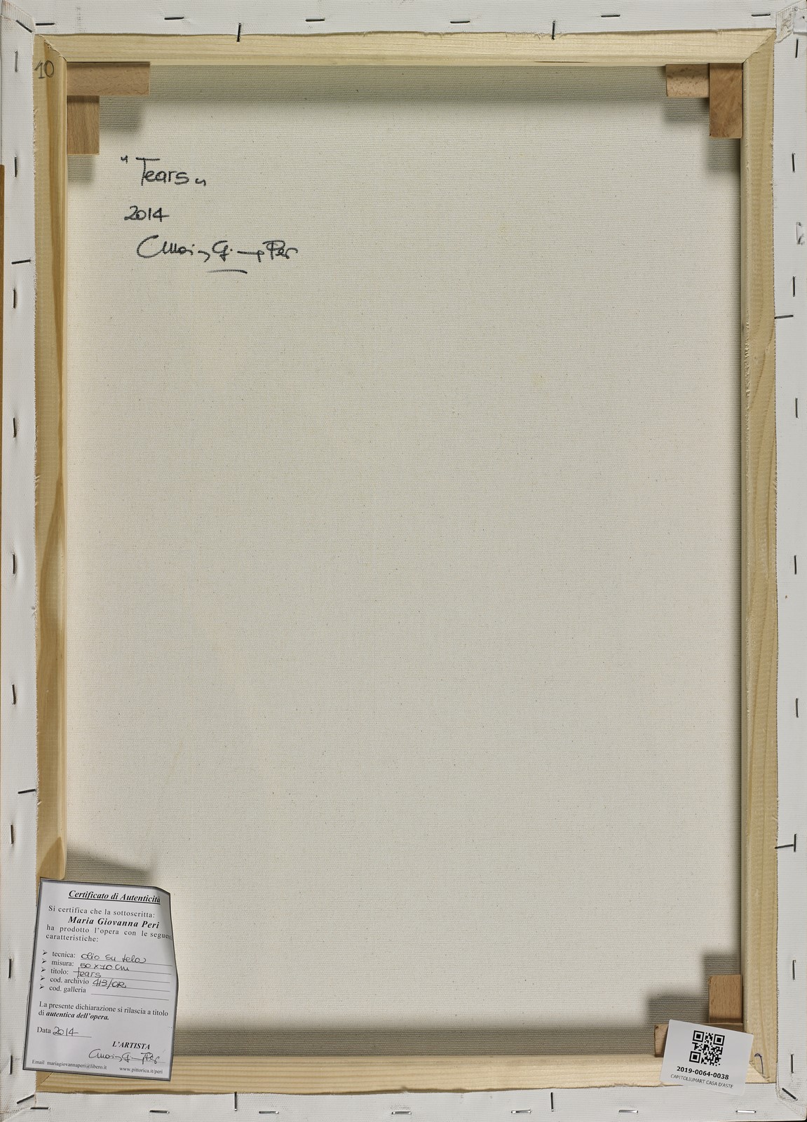 PERI MARIA GIOVANNA (n. 1978) Tears. 2014. Olio su tela . Cm 50,00 x 70,00. Firma in basso a destra. Al retro titolo, firma, anno e certificato di autenticità dell'artista. Autentica dell'artista su fotografia.