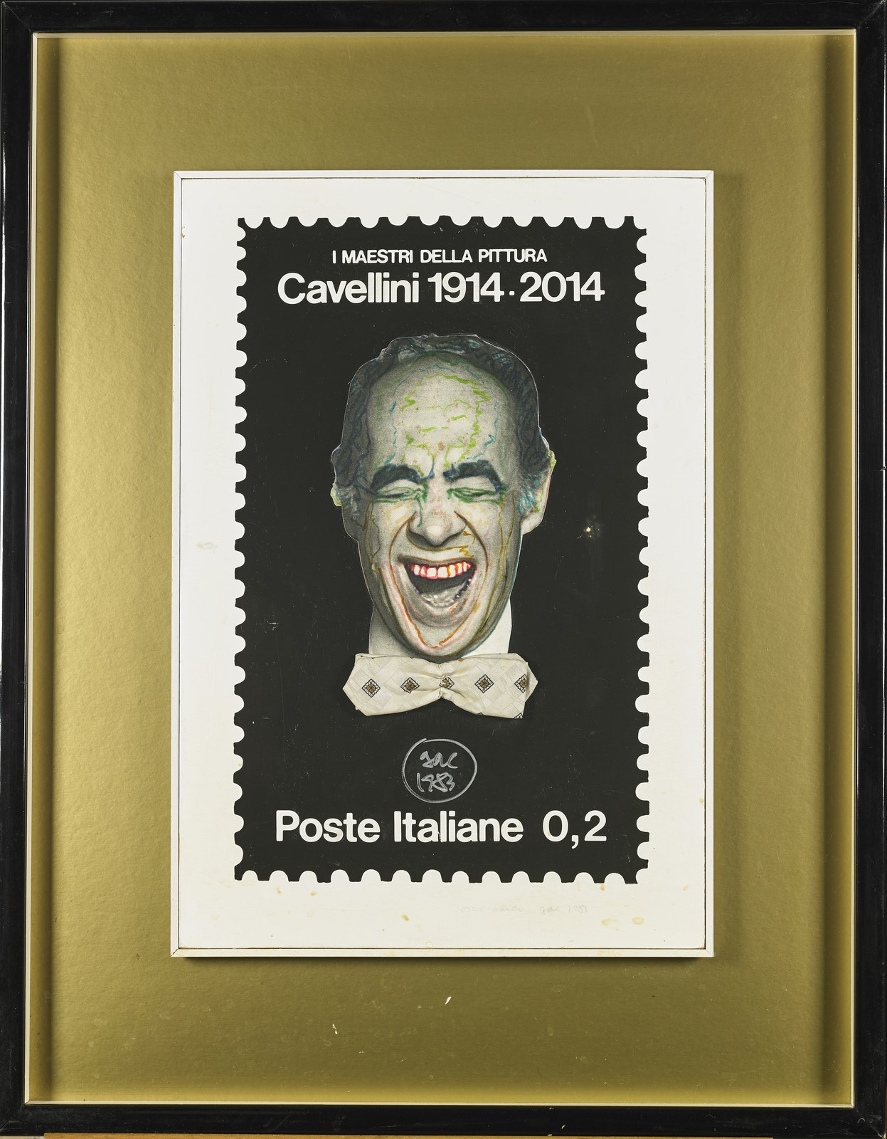CAVELLINI GUGLIELMO ACHILLE (1914 - 1990) The mastersof painting. Cavellini 1914-2004. 1983. Mixed media and collage on board. Cm 34,00 x 50,00. Signature and year lower right. Cornice presente