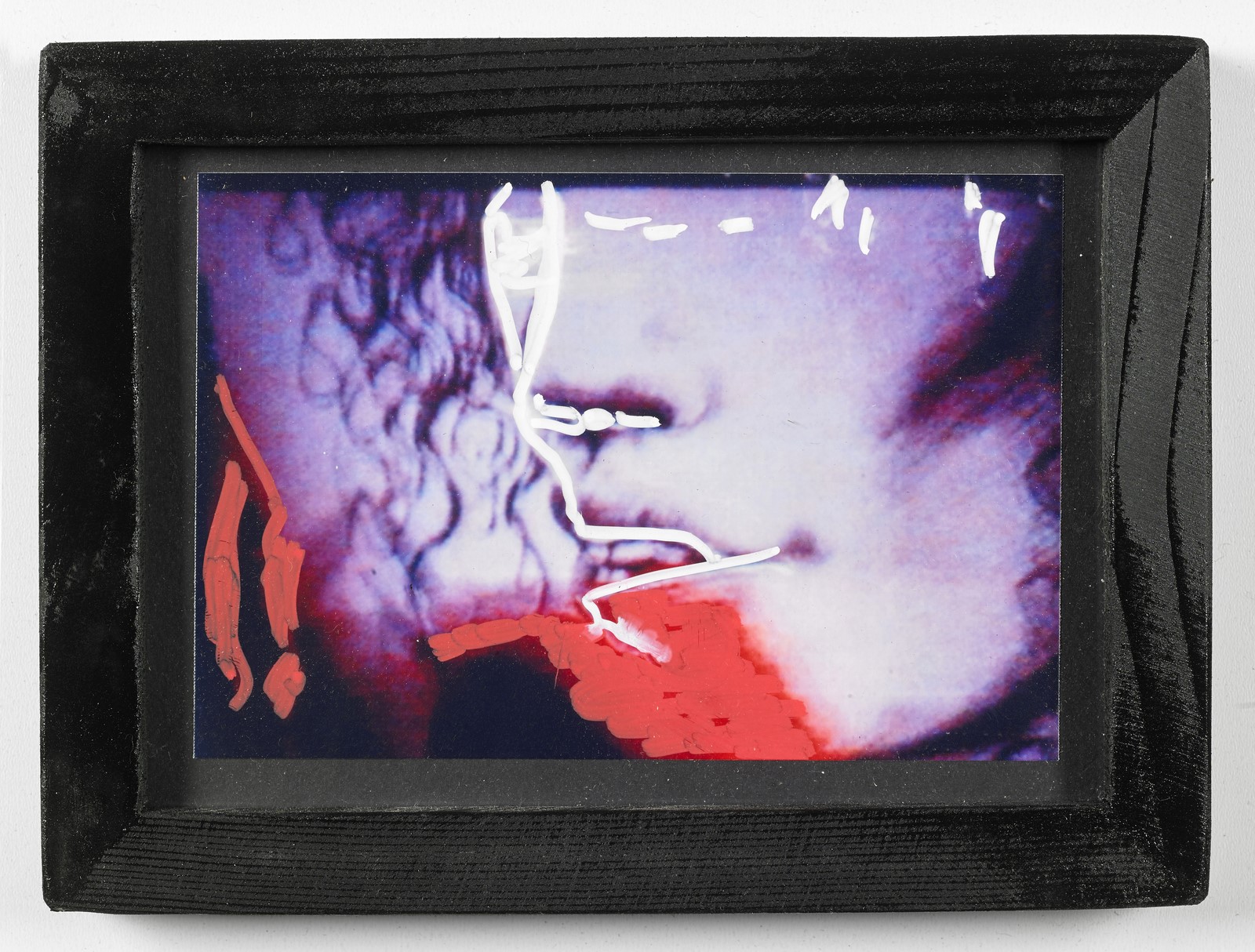 SCHIFANO MARIO (1934 - 1998) Untitled. Mixed media on photograph. Cm 15,00 x 10,00. Schifano stamp lower right. At the back signature and Mario Schifano - Multistudio Foundation label. Mario Schifano - Multistudio Foundation authenticity certificate on photo (10/10/2007). Telemarket authenticity certificate. 1990 -1997. Cornice presente