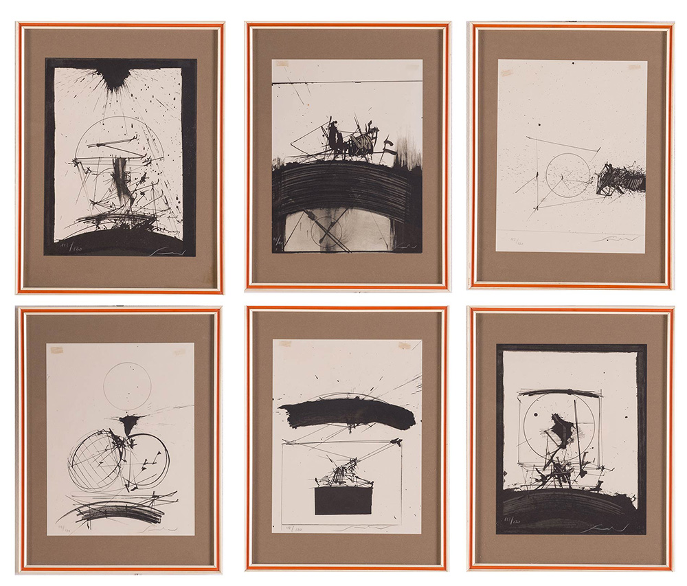 Emilio Scanavino (Genova 1922 - Milano 1986), Lotto di sei litografie su carta. Firmate in basso a destra Scanavino, numero di tiratura in basso a sinistra 113/120, H cm 30x23