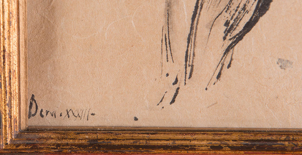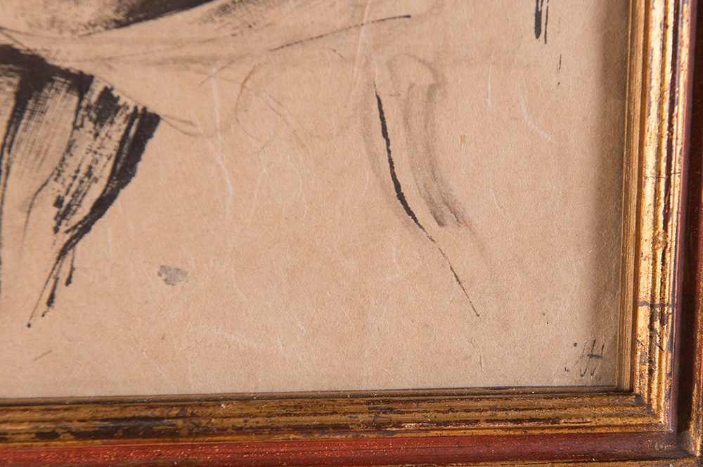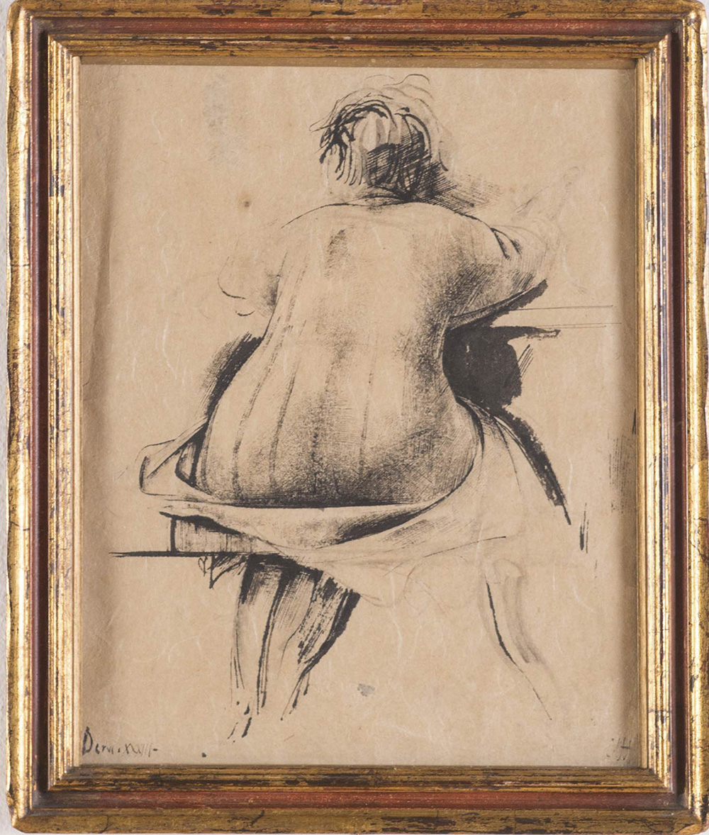 Pietro Annigoni (Milano 1910 - Firenze 1988), “Nudo di schiena”. Tecnica mista su carta, siglata in basso a destra, in basso a sinistra iscrizione ‘Dervi.XXXIII’, H cm 28.5x22